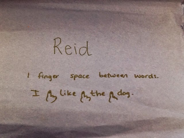 One great thing about having teacher work days is that I can sit down with every child's writing journal and read all of the pages. This helps me give every child their own individual writing goal. This is what your child is working on in their writing to become an even better writer. Some kids are working on adding a label each day, some are working on leaving a finger space between their words, while others are working on putting their letters where they go on the line. Take a look at some of our writing goals!